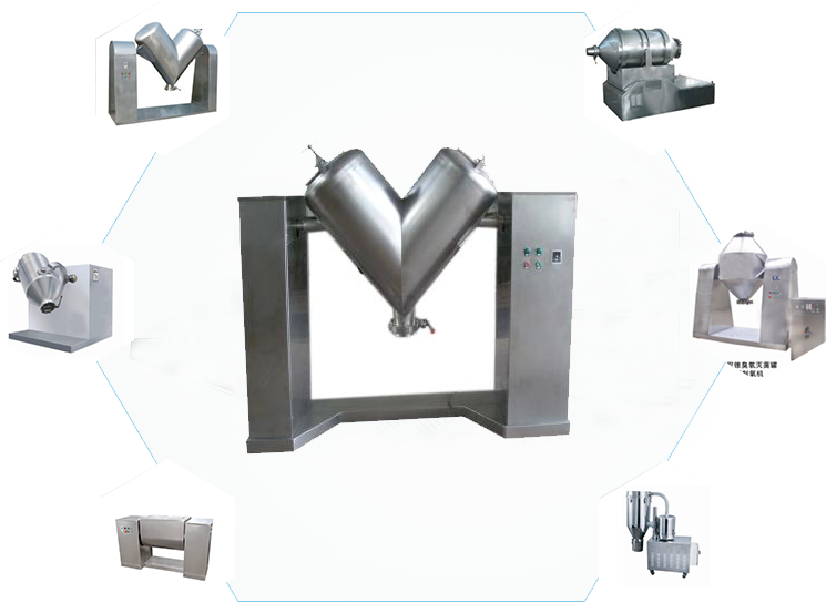 廣泛用于粉、粒狀物料食品添加劑,飼料的混和。具有混合迅速、混合量大、出料便捷等特點